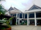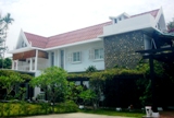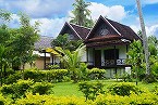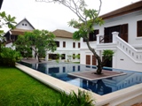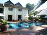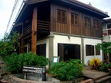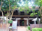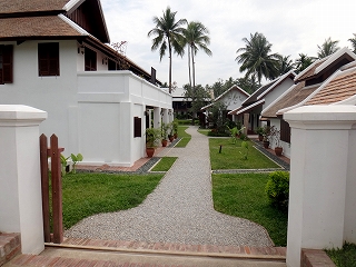 町の中心から離れたラオス伝統家屋のビラ風ホテル |